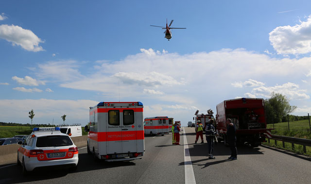 Dort folgte fast zeitgleich ein weiterer Pkw von hinten auf dem linken Fahrstreifen und fuhr in die Unfallstelle hinein. Durch die insgesamt sechs Beteiligten kam der Verkehr fast zum Erliegen. Am vordersten Fahrzeug aus Göttingen wurde die Beifahrerin vermutlich mit Halswirbelsyndrom und Schock mit dem Hubschrauber Christopher Gießen in das Klinikum Fulda gebracht. Der Fahrer blieb unverletzt.