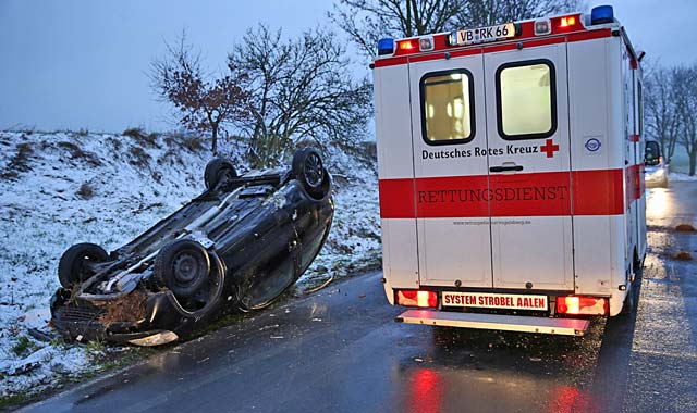 Zwei Verletzte bei einem Verkehrsunfall zwischen Billertshausen und ZellAuf der winterlichen Straße überschlagen