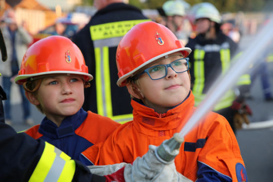 Erster Stadtrat Berthold Rinner sagte in einem Grußwort, dass die Jugendlichen der Feuerwehr mit Begeisterung bei der Sache sind. „Die Jugendfeuerwehr ist die Zukunft der Feuerwehr“, so sein Credo. Alsfelds Wehrführer Carsten Schmidt dankte seinen jungen Kameraden für den Übungseinsatz und sagte: „Ich bin seit 23 Jahren dabei und ihr hoffentlich mindestens genauso lange.“ Stadtbrandinspektor Michael Eilts lobte die Feuerwehrleute Mathis Kruse und Thomas Dreßler für ihre Jugendarbeit: „Ich bin fasziniert, dass so viele Mädchen und Jungen mitmachen.“ Er dankte aber auch dem Publikum, dass aus seiner Sicht die Jugendlichen anspornt.
