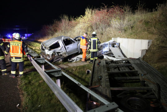 A 5 in Richtung Kassel war zeitweise voll gesperrtGespann mit Anhänger über Leitplanke katapultiert
