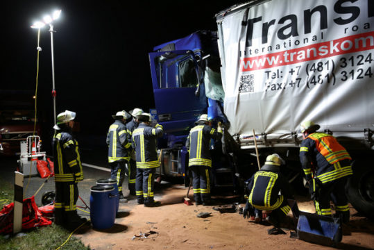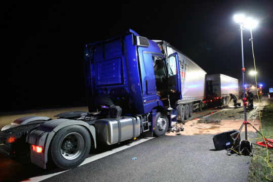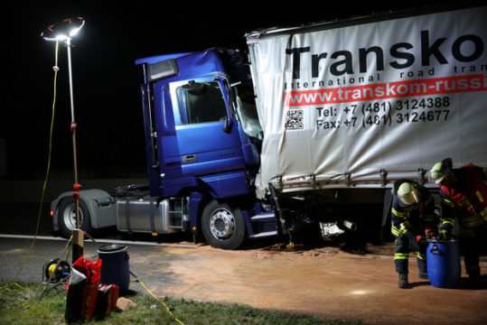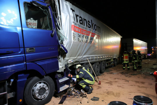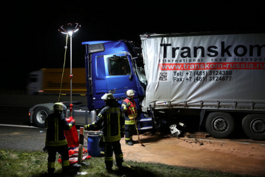 GEMÜNDEN (ol). In der Nacht zum Dienstag kam es auf der A5 in Richtung Kassel erneut zu zwei schweren Verkehrsunfällen. Zuerst kollidierten in Höhe von Burg-Gemünden ein Kleintransporter und ein rumänisches Transporter-Gespann, dabei wurden zwei Menschen leicht verletzt.