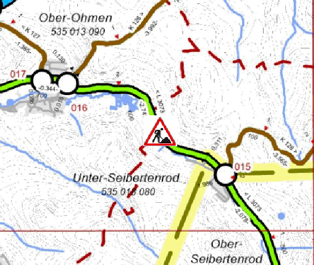 Schutzplankenmontage an der Landesstraße (L) 3073 zwischen Ulrichstein/Unter-Seibertenrod und Mücke/Ober-OhmenSchutzplankenmontage mit Ampelreglung auf L 3073