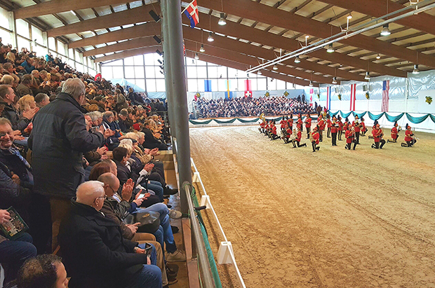 Im Rahmen einer Hengstschau präsentierte der Pferdehof in einer festlich geschmückten Reithalle renommierte Deckhengste und hoffnungsvolle Youngster den über 1.000 Zuschauern. Bei einem Showauftritt im Rahmen der Adventsauktion am Alsfelder Pferdezuchtzentrum war der Kontakt zum Gestüt in Niedersachsen bereits vor vier Jahren zustande gekommen.