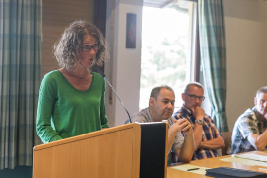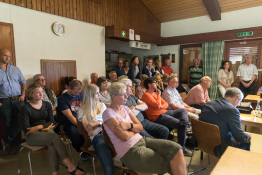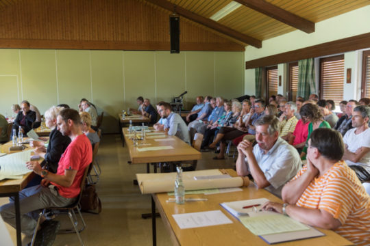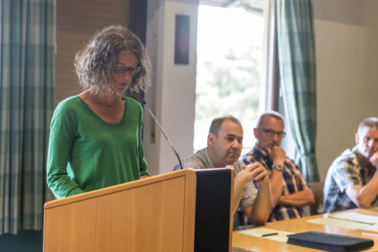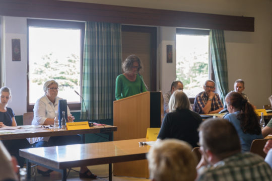 Für die Bürgerinnen und Bürger von Heblos ist dies jedoch keine Option. Diese Meinung vertritt nicht nur Anette Kreuzinger, die sich anschließend zu Wort meldet, sondern auch der Ortsbeirat, der sich einstimmig gegen den Bau der Anlage entschieden hat. Kreuzinger erklärt, dass eine solche Solaranlage das Gesamtbild des Dorfes und die Natur „verschandeln“ würde und fragt, warum „willkürlich irgendwo in der Landschaft Solaranlagen errichtet werden sollen“, gerade wenn der Hälsberg, ein Naturschutzgebiet, sich in unmittelbarer Nähe befindet. Dass das vor 50 Jahren ausgewiesene Gebiet sich nach dem Wachsen des Neubaugebietes, nicht mehr für eine solche Nutzung eignet, ist ebenfalls ihr Standpunkt. Bereits 130 Unterschriften sind gegen den Bau der Anlage gesammelt worden, doch den Widerstand übten die Bürgerinnen und Bürger vor allem mit Präsenz und ehrlich, harten Worten.
