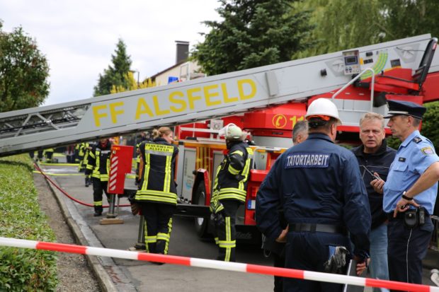 Über die Bundesstraße 254 zwischen Alsfeld und Eudorf mussten dazu Schlauchbrücken verlegt werden. Offensichtlich erschwert wurden die Löscharbeiten durch einen in Brand geratenen Öltank im Keller des Hauses sowie Waffen und Munition im Gebäude. Offiziell bestätigen konnte die Polizei das allerdings bislang nicht. „Es existiert ein Waffenschein“, so die Polizei vor Ort. Der Brandort wurde von mehreren Streifenwagenbesatzungen der Polizei weiträumig abgesperrt. Das Haus ist laut Polizeiangaben akut einsturzgefährdet und kann nicht betreten werden. Zur Brandursache kann laut Polizei nach wie vor keine Aussage gemacht werden.