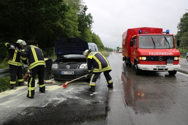 Am Dienstagabend ereignete sich auf der A5 in Richtung Kassel ein Auffahrunfall mit drei Autos, dabei gab es zwei Verletzte. Warum die Fahrzeuge in Höhe der Anschlussstelle Homberg (Ohm) ineinander prallten, wird noch von der Polizeiautobahnstation Bad Hersfeld ermittelt. Während Rettungsteams die beiden Verletzten versorgten, räumten die Frauen und Männer der Feuerwehr aus Nieder-Ohmen einige Trümmerteile von der Fahrbahn und nahmen ausgelaufenes Öl mit Bindemittel auf. Während der Rettungsarbeiten und der Bergung der Unfallwracks war die A5 rund eine halbe Stunde voll gesperrt, es kam zu einem erheblichen Rückstau.