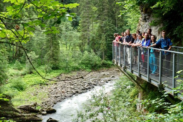 Das Abenteuer wartet vielleicht schon an der nächsten Kehre – Gruppenbild auf dem Weg zur Breitachklamm. Foto: Michaela Marin