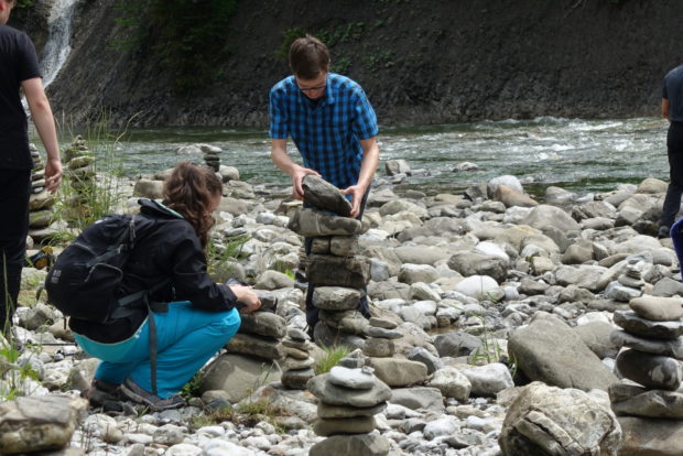 Zeit für ein Späßchen am Rande: Auf dem Weg zur Breitachklamm gab es einen kleinen Wettbewerb im Bauen von Steinmännchen. Foto: Michaela Marin