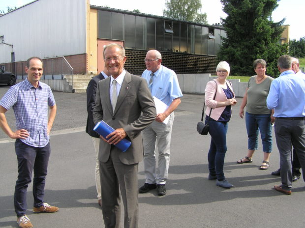 Mit im Gefolge: MdL Kurt Wiegel, Erster Kreisbeigeordneter und CDU-Kreisvorsitzender Dr. Jens Mischak, Bürgermeister Rainer Vollmöller, Erster Stadtrat Lothar Pietsch, der städtische Flüchtlingskoordinator Michael Duschka , JU-Kreisvorsitzende Jennifer Gießler und andere CDU-Vertreter, die den Gast aus Wiesbaden auf der Tour begleiteten. Wintermeyer kommt im übrigen – so war am Rande zu erfahren – regelmäßig nach Lauterbach, um in einer ortsansässigen Manufaktur seine Hemden schneidern zu lassen. Neben einem ausgiebigen Meinungsaustausch schwang hier und da auch Wahlkampfwerbung für die Christdemokraten mit.