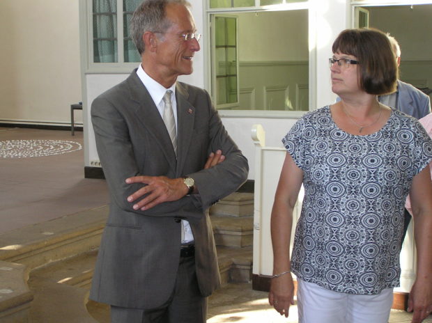 Das Kirchenprogramm war deshalb mit auf dem Plan, weil der CDU-Politiker auch Vorsitzender des evangelischen Arbeitskreises ist und selbst lange als Organist tätig war. Sehr beeindruckt zeigte sich der Staatsminister vom Blick auf Lauterbach vom Turm der Stadtkirche aus – wenngleich manchem der Turmbesteiger auch etwas mulmig dabei war. Neben den umfangreichen Erläuterungen durch Kirchenvorstandsvorsitzende Jutta Hess zeigte sich Stadtoberhaupt Rainer Vollmöller erstaunlich fachkundig in Sachen Kirche und der Patronatsfamilie Riedesel.