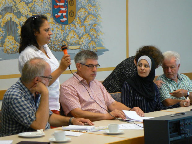 Schnell wurde im lockeren Gespräch mit dem Landrat deutlich, an welche Grenzen die Ehrenamtlichen bei ihrer Arbeit stoßen. So sei es „überwiegend sehr schwierig“, Deutschunterricht zu organisieren, erklärte Lindner. „Wir müssen sehen, dass wir Räume kriegen, wir müssen die Kinderbetreuung organisieren, es ist jedes Mal wieder ein Kampf“. Probleme gebe es auch auf dem Wohnungsmarkt. „Da denkt man immer, die halben Dörfer stehen leer, aber wenn man eine kleine Wohnung sucht, wird es schwierig“, schilderte Lindner. Uli Kill, ebenfalls in der Flüchtlingsinitiative aktiv, wies auf ein weiteres Problem hin. Selbst im Vogelsbergkreis sei es schwer, Praktikumsplätze oder Qualifizierungsmaßnahmen zu bekommen. Die meisten Betriebe in der Region seien einfach zu klein, hätten zu wenig Mitarbeiter und die ein oder zwei Großbetriebe seien hochtechnisiert.