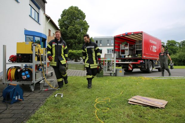 Im Mücker Gemeindeteil Flensungen lief das Untergeschoss einer Apotheke voller Wasser, nachdem der Seenbach über die Ufer getreten war. Feuerwehrleute aus Nieder-Ohmen und Flensungen mussten zu einem mehrstündigen Einsatz anrücken. Mit insgesamt fünf Pumpen wurde das Wasser aus dem Gebäude befördert. „Schätzungsweise 150.000 Liter Wasser mussten abgepumpt werden“, so ein Sprecher der Feuerwehr vor Ort.