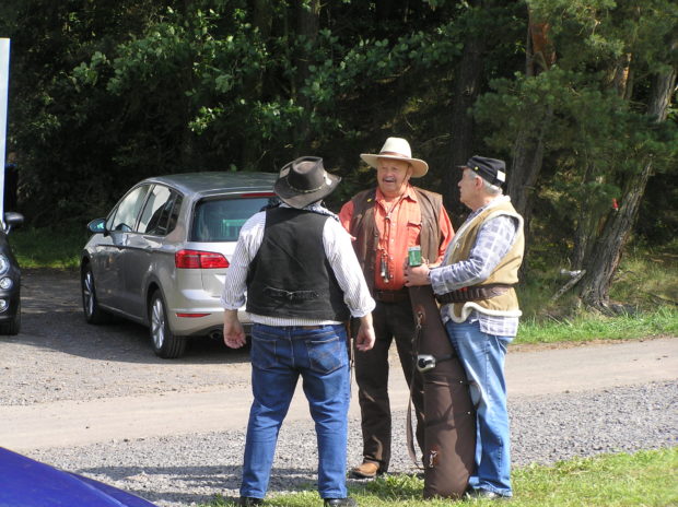 Es ist das gemeinsame Hobby, was die Teilnehmer dieses Westernschießens vereint, und einige von ihnen leben ihren Traum auch und machen das als Job im täglichen Leben. Ein aus Lützen im Osten von Sachsen-Anhalt beheimateter Westernfreund, der dort Lederartikel vertreibt, fiel nicht nur wegen seines originellen Outfits auf. Der sehr freundliche „Neuossi“ erinnerte sich als gebürtiger Hesse und nun Ex-Wessi gerne an die Zeit zurück, als er als junger Mann im ehemaligen Bildungszentrum für Elektrotechnik eine Ausbildung absolvierte und wo er damals wohnte. Andere Teilnehmer berichteten, sie kämen immer wieder gerne in den Vogelsberg, um hier ihr Hobby auszuleben. Allein aus drei Ortschaften im Saale-Holzlandkreis kamen 35 Teilnehmer – früher waren es schon einmal 50 gewesen. Zwei Stände am Gelände vertrieben Munitions- und Westernartikel.