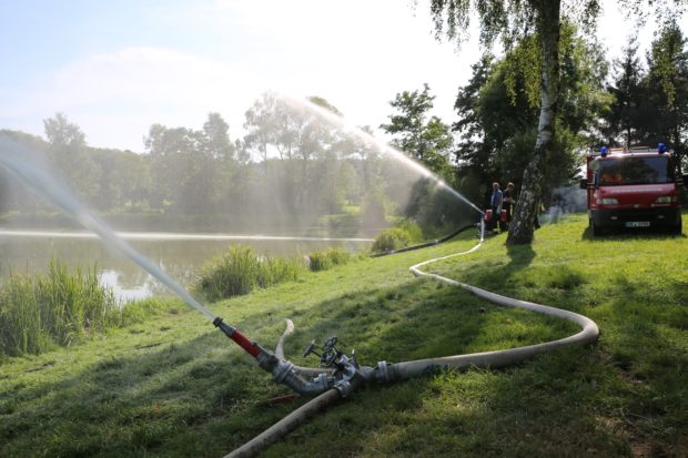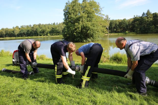 Teich drohte umzukippen - Feuerwehr mit Pumpen im EinsatzHunderte Fische drohen zu ersticken
