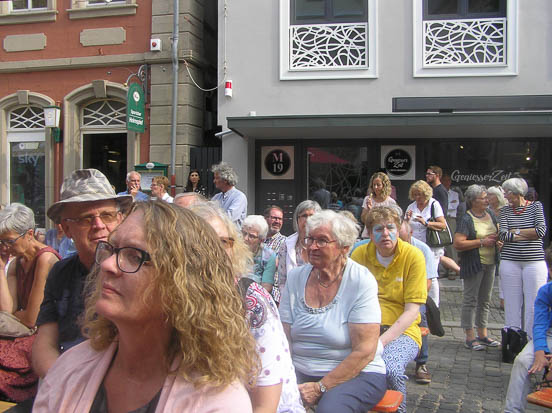 Am Sonntag war außer den beiden Gottesdiensten die Podiumsdiskussion auf dem Marktplatz – eines der beachtenswertesten Ereignisse. Hier diskutierten unter der Leitung von Dekanin Luise Berroth die stellvertretende Kirchenpräsidentin Ulrike Scherf, die Vulkanforscherin Dr. Sabine Schmalz, Erster Kreisbeigeordneter Dr. Jens Mischak und der Leiter des Beratungszentrums Vogelsberg, Matthias Gold, unter dem Thema „Entdecke mit Entdeckern“ vorwiegend Fragen theologischen Inhalts zum Thema des Kirchentags „Gott neu entdecken“.