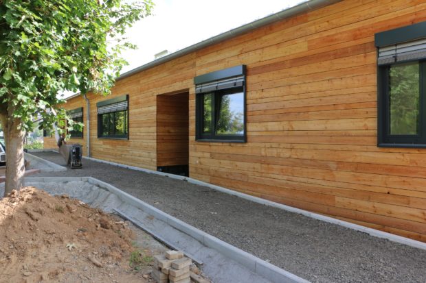 So sieht das neue Betreuungsgebäude von außen aus: Viel Holz und große Fenster für viel Licht. Foto: Gaby Richter