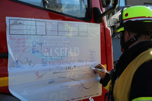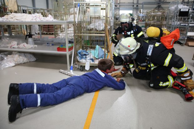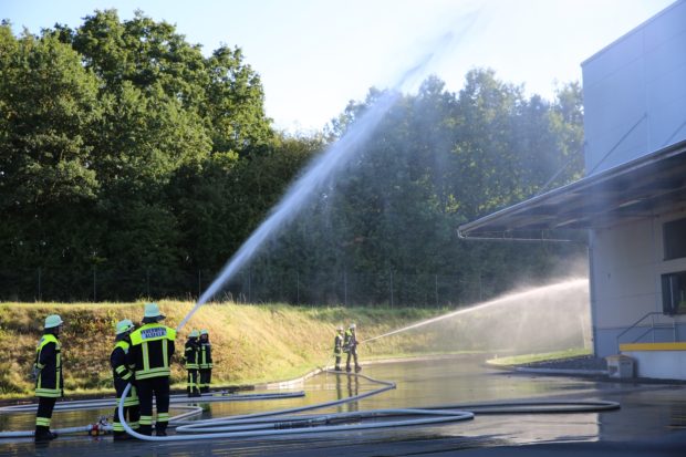 Stadtbrandinspektor Schäfer resümierte einen guten Verlauf des geplanten Einsatzes: „Die Übung hat funktioniert“. Er bedankte sich explizit für das zur Verfügung gestellte Übungsareal. Kirsten Kaage von der Geschäftsleitung der Wäscherei dankte den Übungsteilnehmern für ihr Engagement. „Es war beeindruckend die Arbeit der Feuerwehrleute aus der Nähe zu sehen“, sagte Kaage.