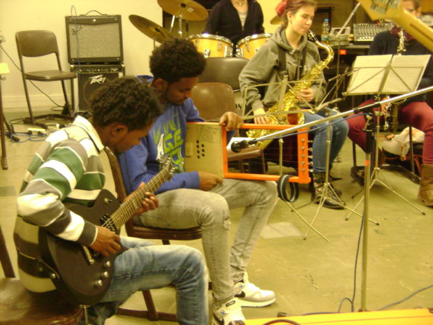Die interkulturelle „Creative Band“ der Musikschule probt für ihren Auftritt am Sonntag. Foto: Alsfelder Musikschule