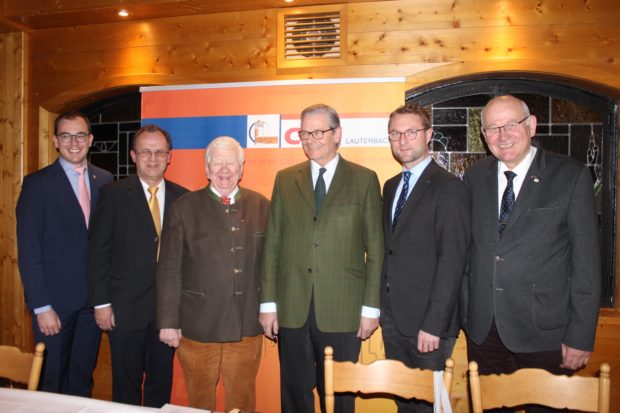 50 Jahre in der CDU-Lauterbach: Ehrung für Baron Ansko Riedsesel (3.v.l.) und Baron Kurt-Joachim Riedesel (3.v.r.), Freiherren zu Eisenbach, durch CDU-Kreisvorsitzenden Dr. Jens Mischak (2.v.r.) mit Landtagsabgeordnetem Kurt Wiegel (re.) sowie Fraktionschef Felix Wohlfahrt (links) und Parteivorsitzendem Uwe Meyer.