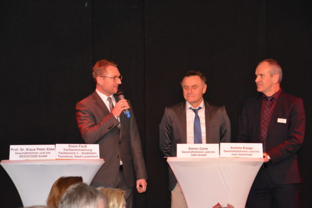 Neben Stefan Carle kamen im Forum die Projektträger zu Wort: Prof. Dr. Klaus Peter Ebke von MESOCOSM in Homberg Ohm, Erwin Fauß, Fachbereich Stadtleben, Tourismus der Stadt Lauterbach, Rudolf Frischmuth vom Zweckverband Naturpark Vulkanregion Vogelsberg, Andrea Kaage mit ihrem mein kleinHOTEL in Herbstein sowie Ernst Ulrich Fuchs, Fleischerei- und Lebensmittelmarkt aus Mücke/Groß-Eichen. Sie alle lobten Engagement, Ideen und Zugewandtheit der LEADER-Verantwortlichen und machten in ihren unterschiedlichen Statements deutlich, wo sie deren Leistungen besonders in Anspruch genommen hatten. Hauptschwerpunkte waren dabei Themen wie Existenzgründung und Wachstum, aber auch ganz Praktisches wie das Ausfüllen entsprechender Anträge oder das Erarbeiten eines Businessplans.