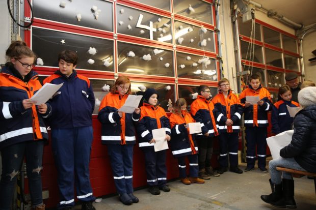 Im weihnachtlich geschmückten Gerätehaus in der Jahnstraße erzählten die Mädchen und Jungen die Geschichte von der Weihnachtsmaus, die zu den Feiertagen nicht nur leckere Plätzchen verschwinden lässt. Natürlich wurden im Rahmen der Zusammenkunft auch Weihnachtslieder gesungen und es gab heißen Apfelsaft sowie Plätzchen. Der Verein der Feuerwehr überreichte dem Nachwuchs zum Abschluss eine süße Überraschung.