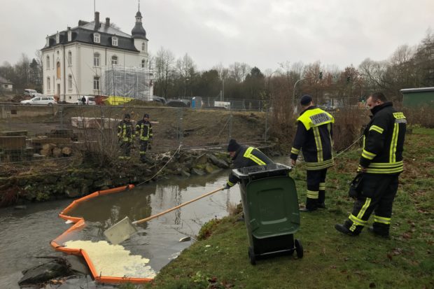 „Das ist eine riesen Sauerei“, sagte Bürgermeister Stephan Paule, der sich am Erlenteich am Samstag selbst ein Bild von der Lage machte. Es müsse nun geprüft werden, ob eventuell Erdschichten des erst frisch sanierten Teichs weggebaggert werden müssen. Um ihr Trinkwasser müssten sich die Alsfelder allerdings keine Gedanken machen. „Das ist auf jeden Fall in Ordnung, das kommt aus Fernleitungen. Und die Tiefbrunnen von Alsfeld liegen nicht im Stadtgebiet“, sagte Paule. Wie er sagte, hat die Stadt Alsfeld mit ihren Feuerwehrleuten alles unternommen, um den Umweltschaden einzugrenzen.