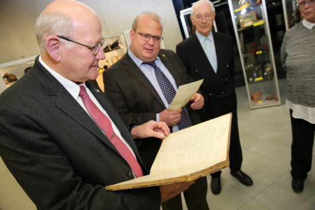 Der Landtagsabgeordnete Kurt Wiegel übt sich im Lesen der altdeutschen Schrift in einem der historischen Protokollbücher. Foto: privat
