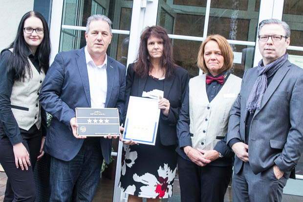 ANTRIFTTAL (ls). Erst im April diesen Jahres wurde es eröffnet und schon ist der nächste Meilenstein geschafft: Das Seehotel Michaela wurde von Roger Merk, dem Geschäftsführer der Vogelsberg Touristik mit dem vierten Stern zertifiziert. Aus drei Sternen werden damit vier Sterne für das Hotel vor der traumhaften Seekulisse.