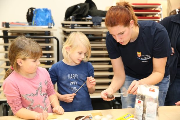Der Kreativität freien Lauf lassen konnten die Feuerfüchse auch beim Herstellen von Schneemännern. Diese wurden aus flüssiger Schokolade, Pfeffernüssen und Dominosteinen kreiert.