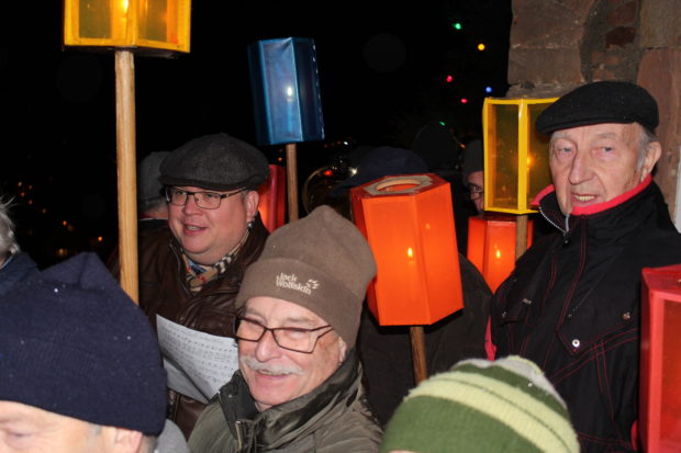 Den Turmsängern blieb zwischen den Auftritten am Turmumgang um 17.15 Uhr, 18 Uhr und 19 Uhr beim Aufwärmen in der Türmerstube auch Zeit für geselliges Beisammensein, Weihnachtslieder und das ein oder andere „Schwätzchen oder Schnäpschen“.
