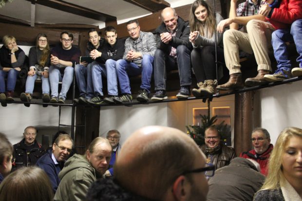 In der vollbesetzten Türmerstube begrüßte Pfarrer Peter Remy die Sänger, dankte für ihr Engagement und überbrachte den symbolischen „Singwein“. Ingrid Kober, die Vorsitzende des Gesangvereins Liederkranz-Harmonie, stellte zudem zwei neue Turmsänger, Horst Weidlich und Herbert Krug, vor. Auch wenn der Chor mit der Jahreshauptversammlung 2017 die wöchentliche Singtätigkeit eingestellt habe, halte der Verein die jahrhundertealte Tradition des Christkindwiegens weiter in Ehren, so Kober.