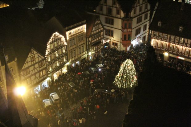 Hessischer Rundfunk drehte vom Kirchturm - Reportage morgen Abend um 19.30 Uhr in der HessenschauHoch vom Turm der Walpurgiskirche: Traditionelles Christkindwiegen