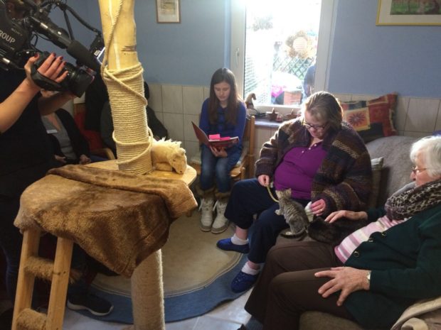 ALSFELD (ol). Wie in einer Pressemeldung bekannt gegeben wurde, kam der Fernsehsender RTL anlässlich des neu eingeweihten Senioren- Lesezimmers vom Tierheim Alsfeld zu Besuch, um die ungewöhnlich schöne Atmosphäre inmitten menschlicher und tierischer Gesellschaft mit der Kamera festzuhalten.