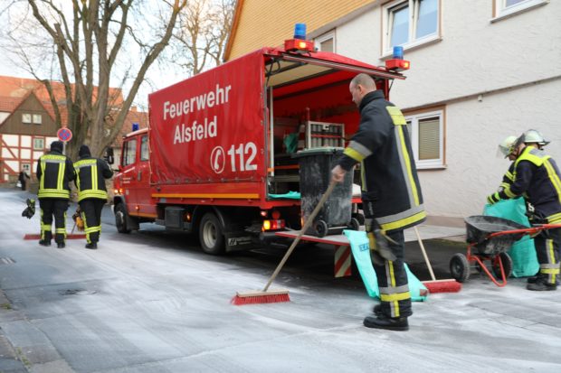 Wie ein Feuerwehrsprecher schilderte, hatten Anwohner eine Ölspur auf der Straße am Schnepfenhain gemeldet. Die alarmierten Einsatzkräfte der Feuerwehr der Stadt Alsfeld verfolgten die Verunreinigung und stießen wenig später auf das geparkte Auto. „Unter der Lenkung des Autos zeigte sich eine Öllache“, sagte der Feuerwehrsprecher. Mit Bindemitteln, Besen und Schaufeln wurde das ausgelaufene Öl aufgenommen.
