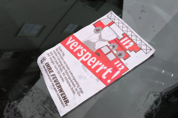 Grund für die Alarmierung war eine Ölspur in der Steinborngasse, die von den Feuerwehrleuten schließlich über Umwege erreicht und beseitigt werden konnte. Für die Beseitigung des Öls kamen Bindemittel und Besen zum Einsatz. Die Falschparker wurden notiert und erhielten ein „mahnendes Feuerwehrknöllchen“ am Fahrzeug befestigt. „Guten Tag. Sie behindern mit ihrem ordnungswidrig abgestellten Fahrzeug den Rettungsverkehr. Im Einsatz zählt jede Minute. Wir wünschen Ihnen, dass morgen nicht Sie waren. Ihre Feuerwehr. Unverzichtbar für Ihre Sicherheit“, so die Nachricht.