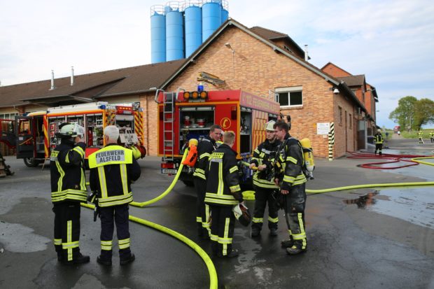 Auch einen Werkstattbrand mit Explosionsgefahr gab es für die Feuerwehr der Stadt Alsfeld in Schwabenrod zu bekämpfen. Dort war eine mit Acetylen gefüllte Gasflasche in Brand geraten.