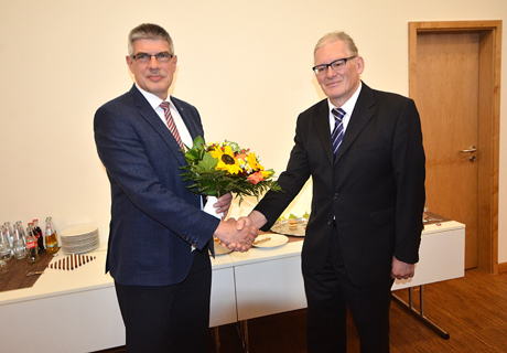 Wahlverlierer Friedel Kappes (rechts) gratuliert dem alten und neuen Landrat Manfred Görig. Foto: jal