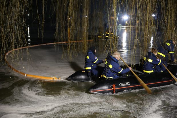 Mit Schlauchbooten war das Technische Hilfswerk auf dem Erlenteich unterwegs und errichtete Ölbarrieren. Fotos: privat