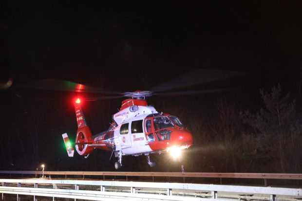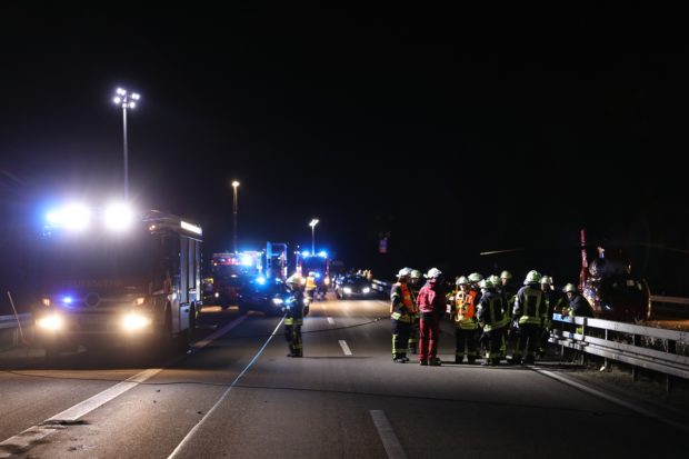 Für die Rettungsarbeiten musste die A5 in beide Fahrtrichtungen über eine Stunde voll gesperrt werden. Feuerwehrleute leuchteten die Autobahn für die Landung des Hubschraubers mit Scheinwerfern aus. Sichtlich erleichtert zeigten sich die Rettungskräfte vor Ort, dass auf dem Sattelzug ein mit 15 Tonnen Salpetersäure beladener Tankbehälter unversehrt blieb. Unter Atemschutz nahmen Einsatzkräfte der Feuerwehr der Stadt Alsfeld das Behältnis in Augenschein und konnten Entwarnung geben. Vorsorglich stand ein Gefahrstoffzug in Bereitstellung.