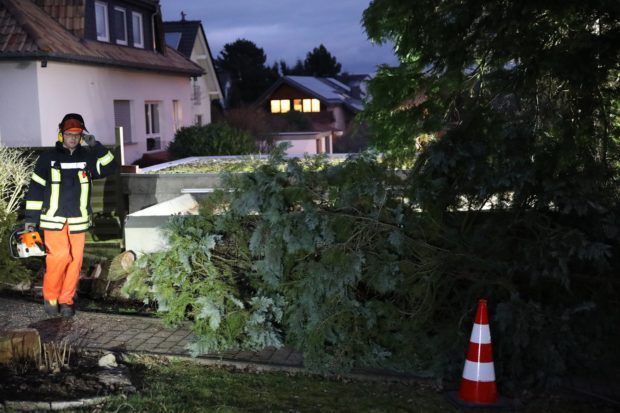 Die Feuerwehr der Stadt half mit einer Seilwinde und fällte den Baum. Foto: privat