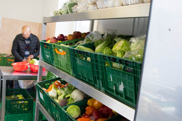 Am Dienstag: Volle Regale – die Lebensmittelausgabe hat begonnen. Verteilt wird auch Gemüse aus den örtlichen Supermärkten.