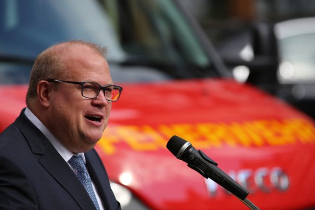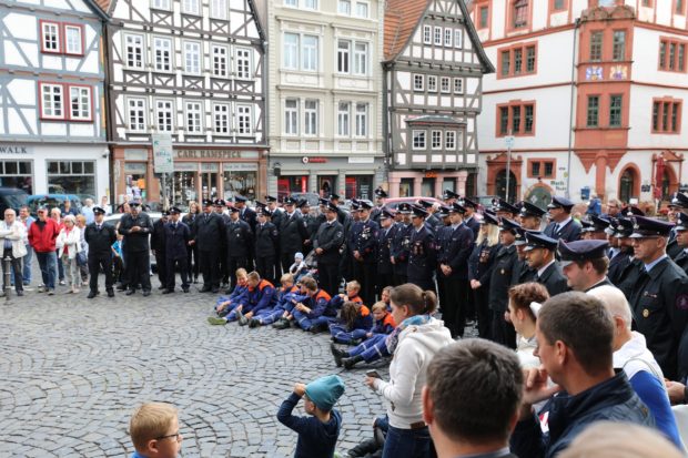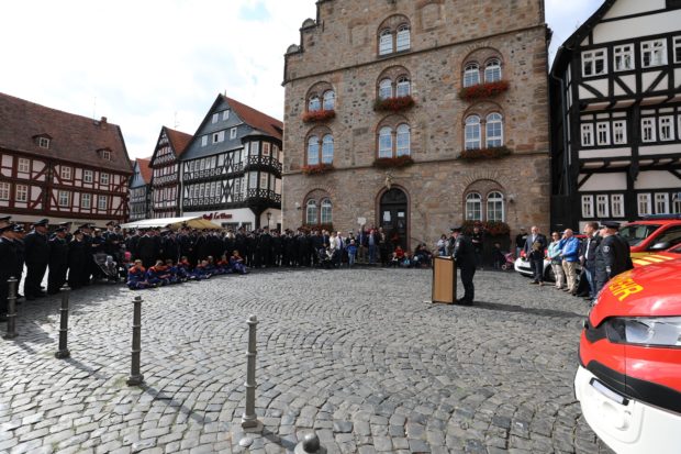 „Unsere ehrenamtlichen Feuerwehrleute sind gekennzeichnet von extrem viel Arbeit und extrem viel Leistung“, sagte Bürgermeister Stephan Paule (CDU) bei der Indienststellung auf dem Marktplatz. Er dankte im Namen aller städtischen Gremien für das Engagement der Frauen und Männer bei der Freiwilligen Feuerwehr und hob in diesem Zusammenhang auch die außergewöhnliche Wartung der Einsatzfahrzeuge hervor. „Die Pflege der Feuerwehrautos kann sich sehen lassen, unsere Feuerwehrleute gehen achtsam mit Steuergeldern um“, sagte Paule. Wie er sagte, übernimmt die Politik in Alsfeld die Verantwortung dafür, dass die Freiwillige Feuerwehr mit den notwendigen Mitteln und Finanzen ausgestattet wird. Dankbar zeigte er sich dahingehend für die Spenden der Feuerwehrvereine.