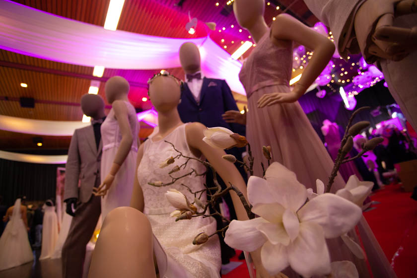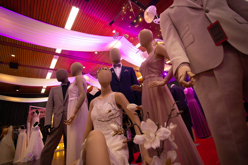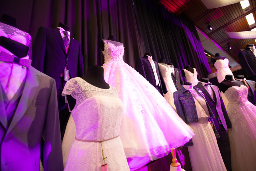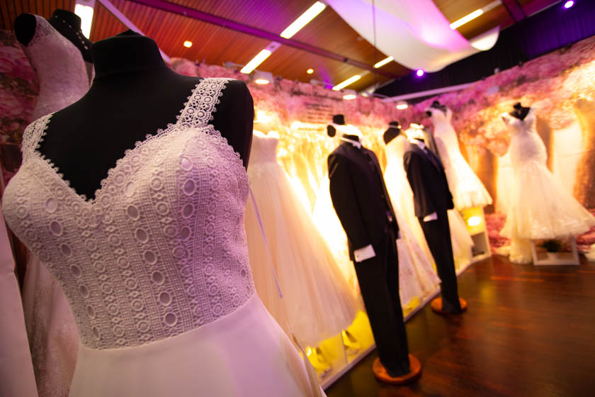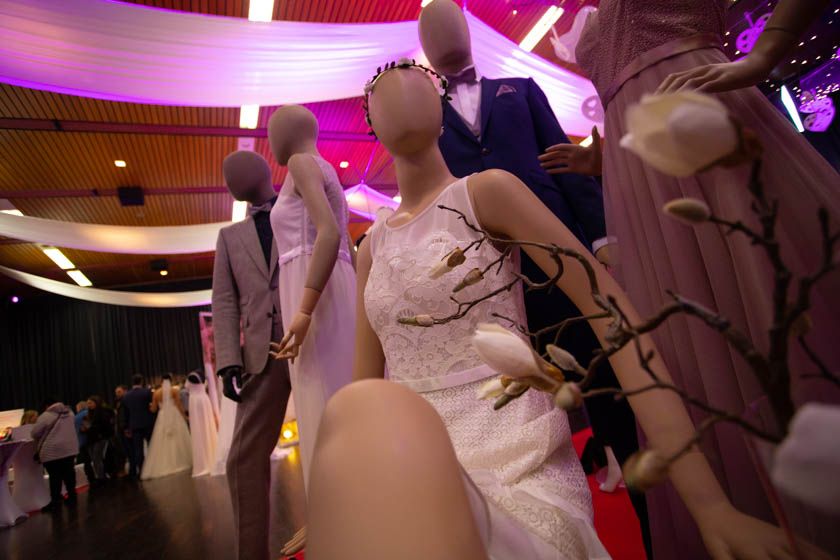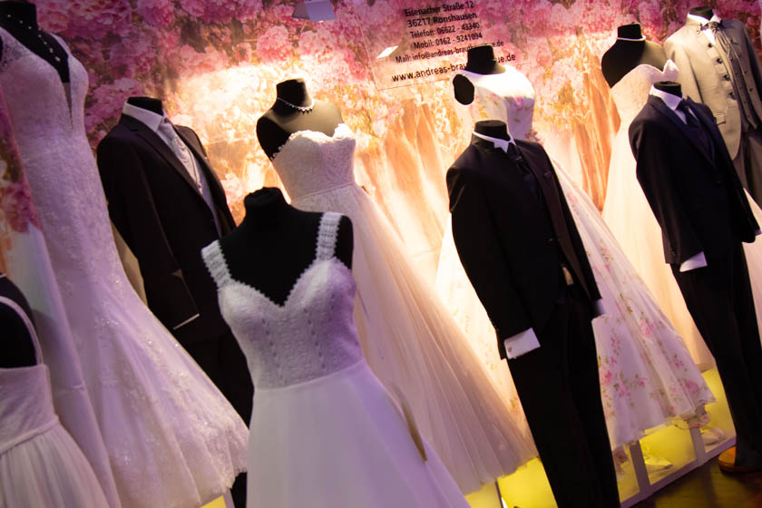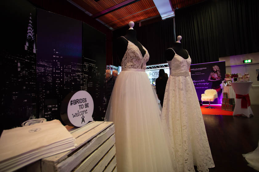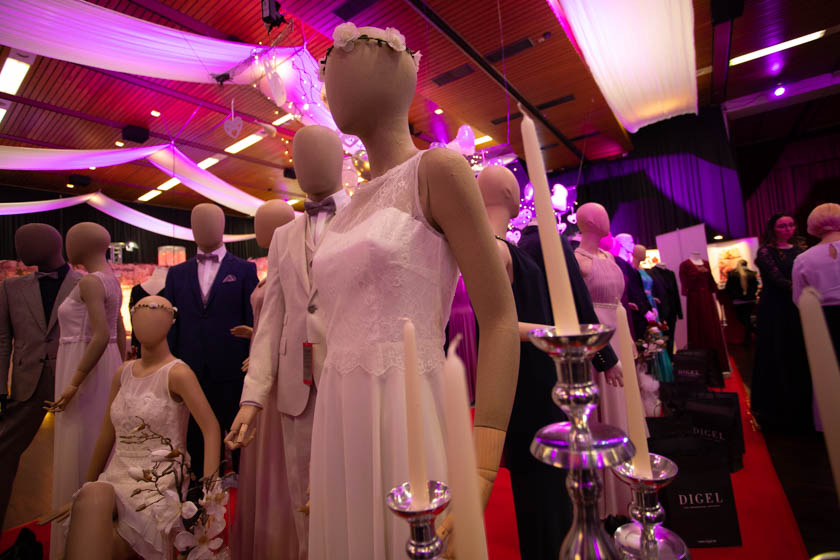 Doch nicht nur der richtige Ring spielt bei einer Hochzeit eine große Rolle, sondern auch das Outfit, beziehungsweise das Kleid und der Anzug. Insgesamt sechs Aussteller präsentierten eine große Auswahl an Braut – und Herrenbekleidung: Andreas Brautboutique, das Modehaus Allemdinger, das Modehaus Heynmöller, Brautkleid ², das Brautstudio Anke Tworuschka sowie Donna Fashion ließen mit ihren Brautkleidkreationen Mädchenträume wahr werden.