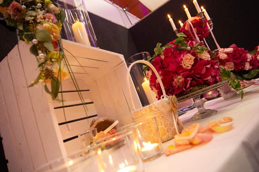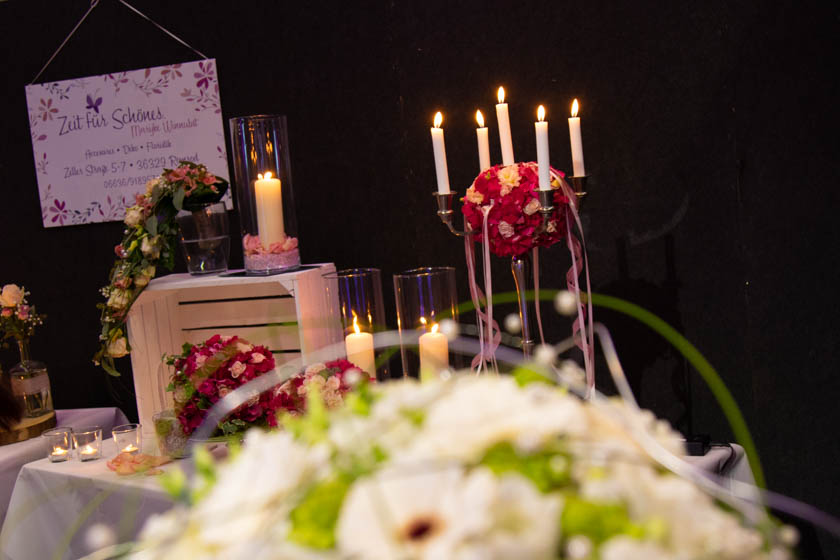 Verliebte Blicke, strahlende Augen und lächelnde Gesichter – so schlenderten zahlreiche Verliebte händchenhaltend an diesem Sonntag auf der Hochzeitsmesse durch die Alsfelder Stadthalle. Bereits am frühen Nachmittag zog es über 500 Menschen in die Halle. Mit über 30 Austellern bot man den Besuchern alles, was der Hochzeits-Herz begehrt. Von traumhaften Brautkleidern, farbenfrohen Blumenboquettes, funkelnden Schmuckstücken über individuell gestaltete Einladungskarten und Fotobüchern bis hin zu wahrhaften Tortenträumen – auf der Hochzeitsmesse kamen nicht nur angehende Bräute ganz auf ihre Kosten.