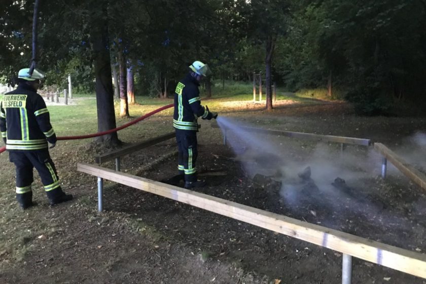 ALSFELD (pw). Ein Flächenbrand in den Erlen hat am späten Donnerstagabend für einen Einsatz der Freiwilligen Feuerwehr in Alsfeld gesorgt. Laut ersten Feuerwehrangaben geriet eine Grünfläche auf einem Spielplatz in Flammen. Was das Feuer ausgelöst hat, ist noch unbekannt.