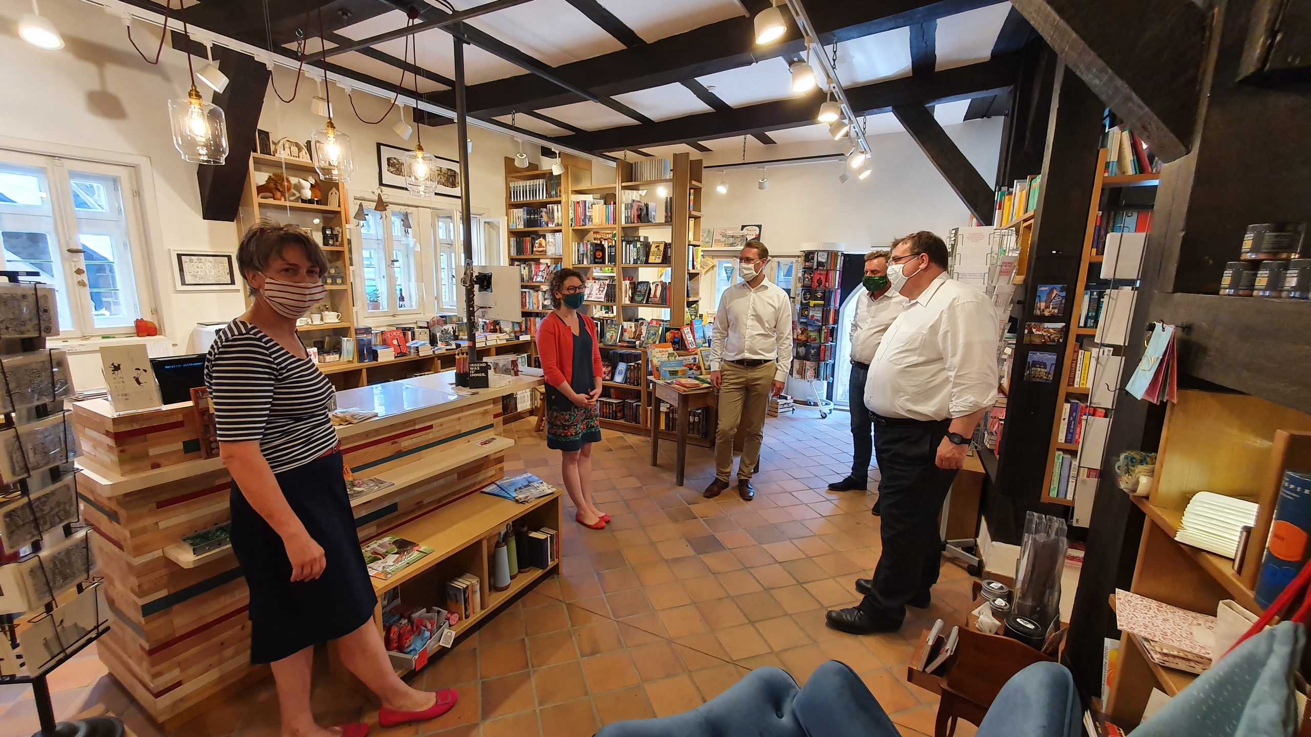 Zweite Station ist der Buchladen „Lesenswert“ direkt am Alsfelder Rathaus. Barbara Möser und Johanna Mildner nahmen sich, unterstützt durch LEADER-Mittel, der Aufgabe an, den Buchladen „Buch 2000“ von Helmar Bünnecke zu übernehmen, zu renovieren und neu zu eröffnen. Ihre Idee: ausgezeichnete Bücher und ein Ort zum Treffen und Austauschen. Das ist gelungen – mit, wie Barbara Möser und Johanna Mildner sagen, bester Unterstützung durch die Mitarbeiter vom Amt für Wirtschaft und den ländlichen Raum, konnten etwa 6.000 Euro Förderung für die Renovierung eingeplant werden.