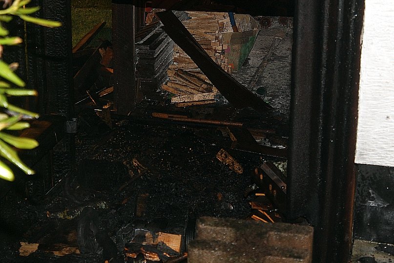Vermutlich ausgelöst durch heiße AscheSchuppen in Angersbach brannte