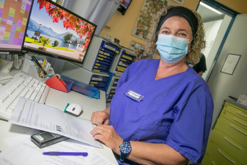 Mit Neuausrichtung der Station zur Kurzzeitpflege übernahm Schwester Irmgard nach weiteren Weiterbildungen im Notfallmanagement und als Notfallschwester die Funktionsleitung der Zentralen Notaufnahme. Seitdem ist sie dort nicht mehr wegzudenken. Sie hat alles im Blick, Patienten und Mitarbeiter, organisiert, koordiniert und entwickelt weiter.