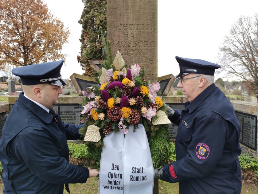 Am Ehrenmal des Friedhofs erfolgte die Niederlegung eines Gedenkkranzes durch die Freiwillige Feuerwehr Romrod. Musikalisch umrahmt wurde die Gedenkfeier durch Jens Zulauf mit einem Trompeten-Solo.