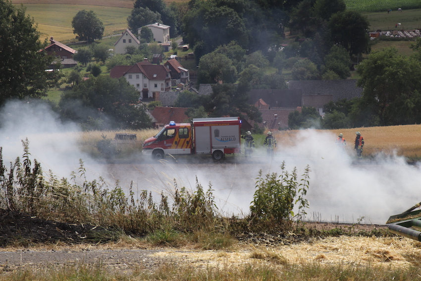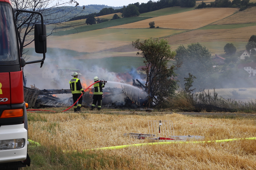BERFA (ol). Auf einem Acker bei Berfa in der Nähe des Sportplatzes hat es ein Feuer gegeben. Nach Auskunft der Feuerwehr stand eine Quaderballenpresse und eine Feldscheune in Flammen. Auch der Stoppelacker fing Feuer.